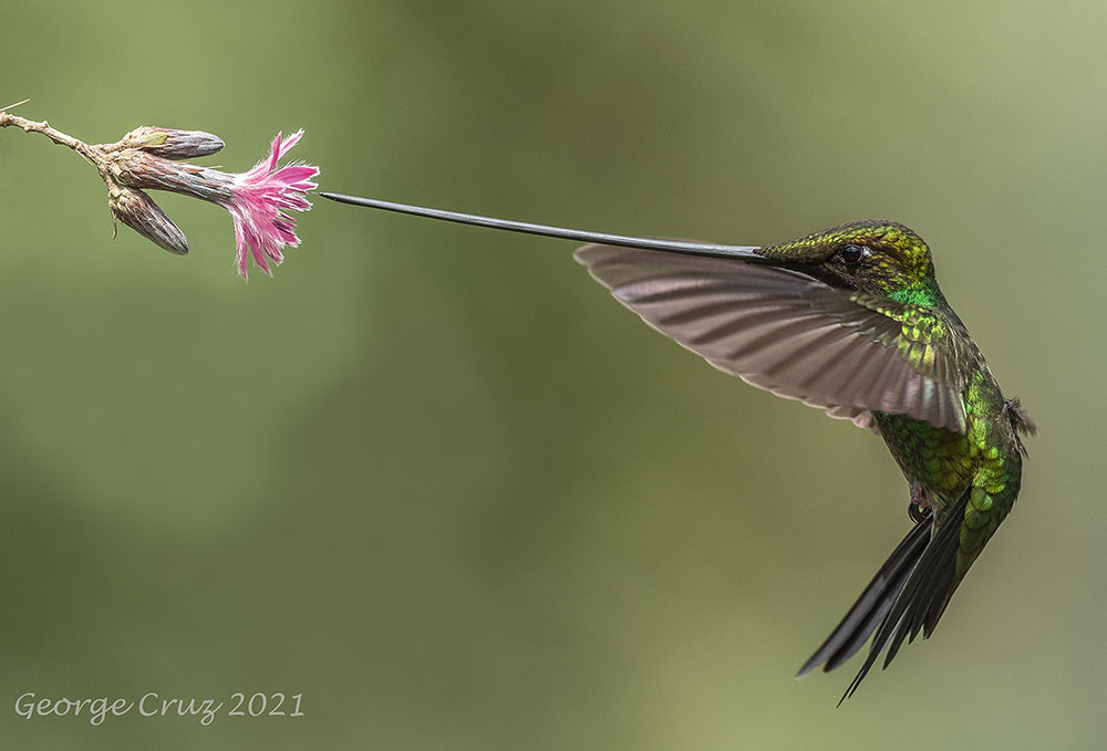 Day Two - Birding San Jorge Reserve/Quito Birding Center - Upper Farm Road & Yanacocha old road, Alambi Road & Nono Tandayapa Road (ANDES HIGHLANDS/UPPER CLOUD FOREST) feeders, gardens, road walking. Feeders at the lodge are visited by the Black-tailed Trainbearer, Green-tailed Trainbearer, Sword-billed Hummingbird, Sparkling Violetear, Tyrian Metaltail, Shining Sunbeam, and, the tiny White-bellied Woodstar. The Trail around the lodge offers possible Tufted Tit-tyrant, Rufous-naped Brush-Finch, Azara's Spinetail, Crimson-mantled Woodpecker, Scarlet-bellied Mountain-Tanager, Blue-and-yellow Tanager, Southern Yellow Grosbeak, Red-crested Cotinga, and the Streak-throated Bush-Tyrant. Overnight San Jorge Tandayapa Lodge, includes 3 meals (boxed lunch)